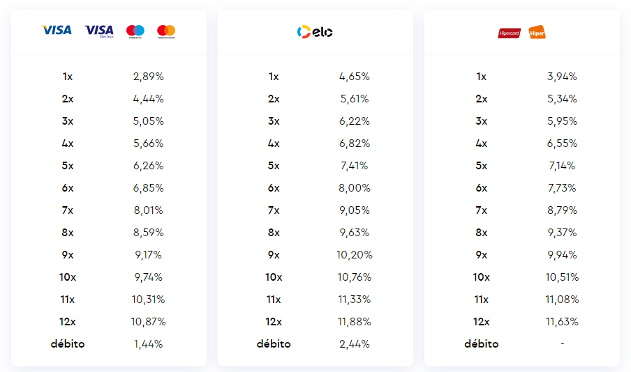 Vamos começar pelo mais importante. AS TAXAS!!!As taxas são únicas e já incluem os custos com antecipação. À vista ou parcelado, o recebimento é em 1 dia útil.