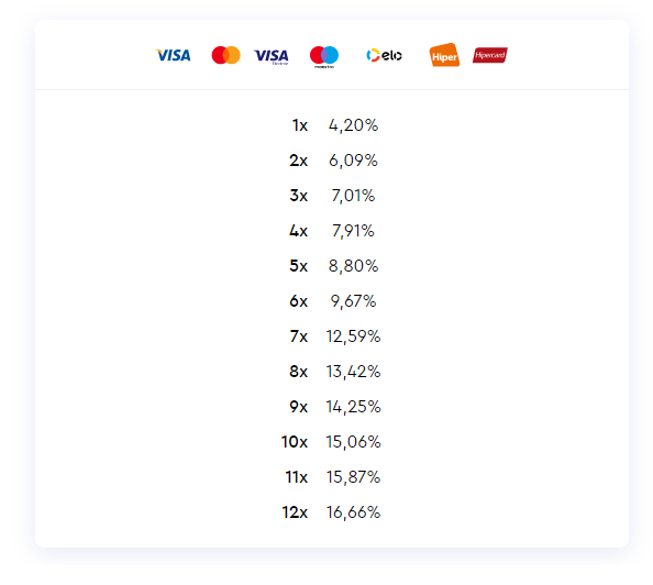 Veja as taxas por bandeiras e número de parcelas.